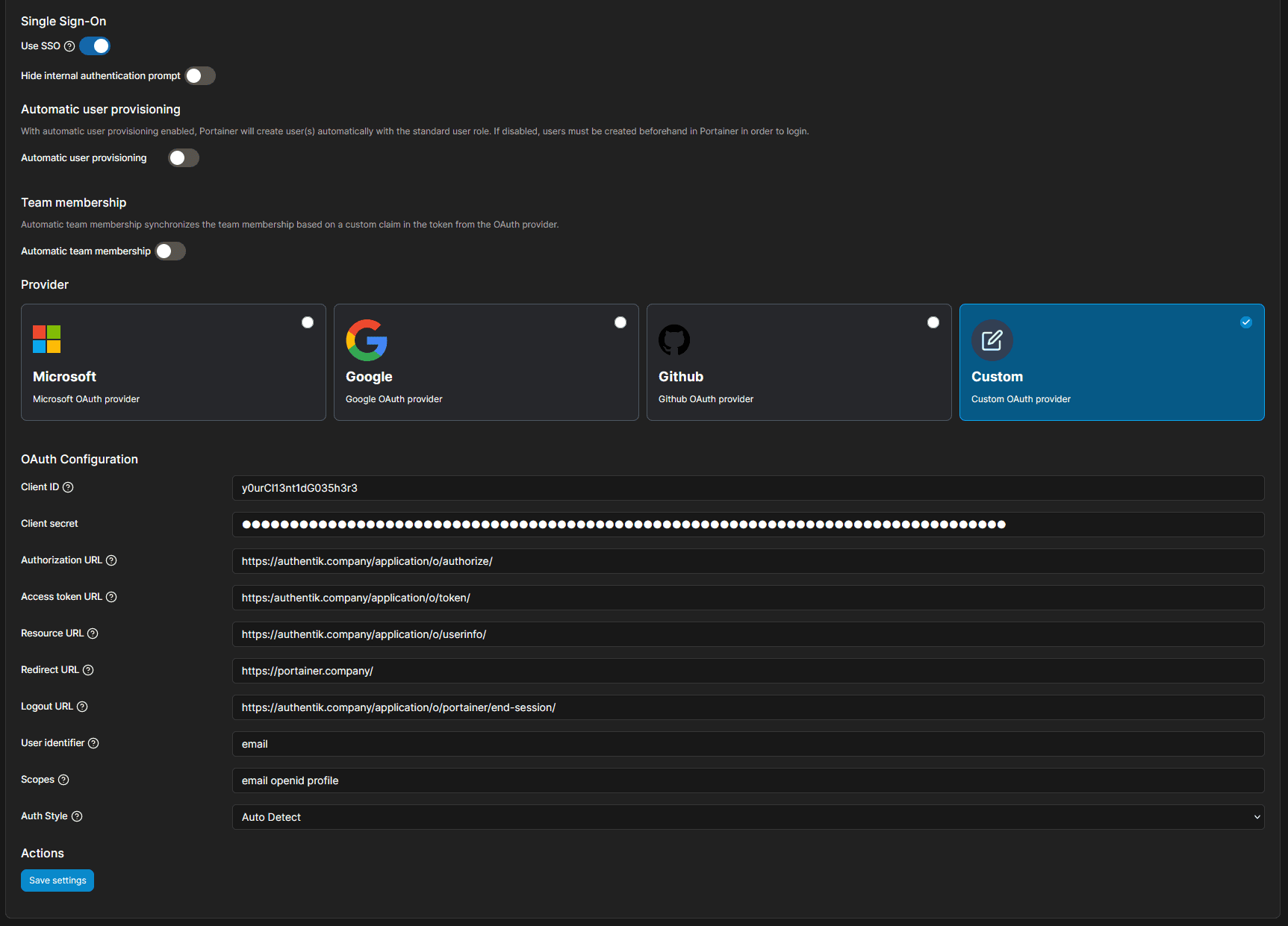 • Logout URL: https://authentik.company/application/o/portainer/end-session/